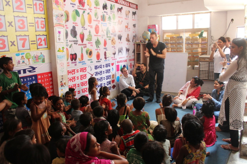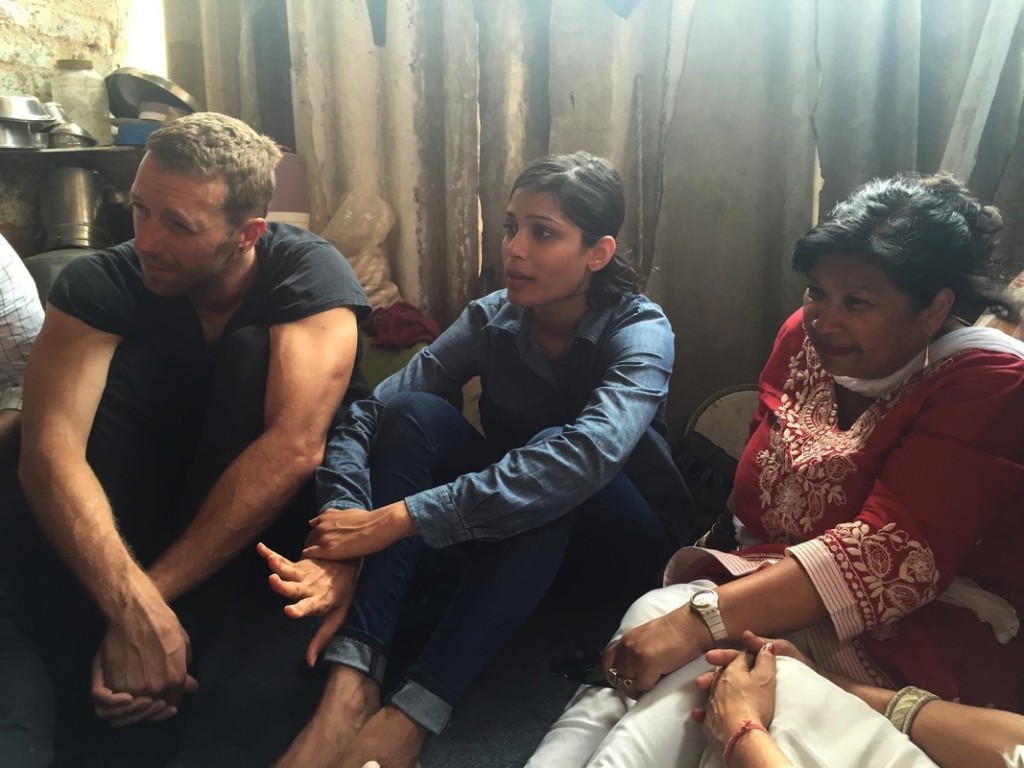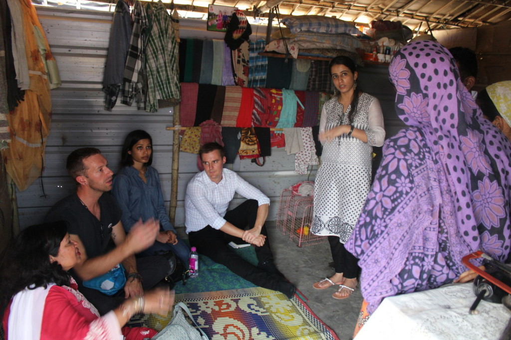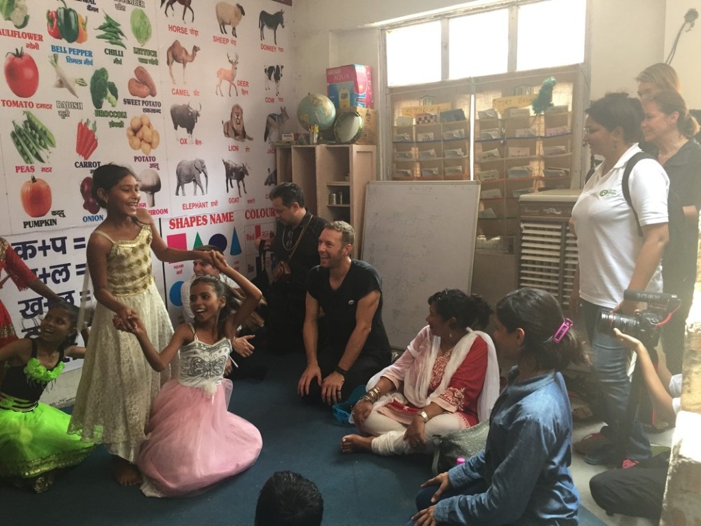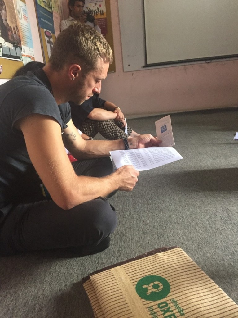 Chris Martin visited an Oxfam India supported project at Madanpur Khadar on the outskirts of Delhi, a resettlement colony of migrants, living on selling recycled garbage. Oxfam India is working with their partner EFRAH to ensure that every child in the community has access to education. I watched as this legendary artist sat comfortably on the floor of sisters Pooja and Aneesha’s tiny hut with only the doorway allowing any ventilation. He listened to the family about how they are educating their 5 daughters and son, their dreams of a college education. He is humble in his questions but he cleverly connects the dots.