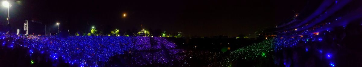 A rainbow Xyloband panorama I took during The Guesthouse during the August 20th performance at the Rose Bowl.
