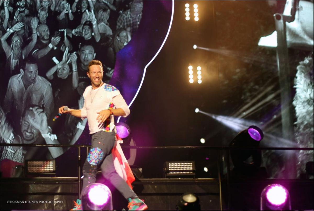 Chris Martin with the Canadian Flag onstage at the Rogers Centre in Toronto, August 21st, 2017. ECLIPSE!!
