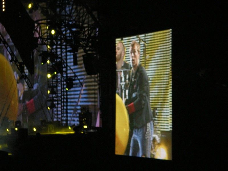 Chris trying to explode a balloon and Will rocking the drums during Yellow