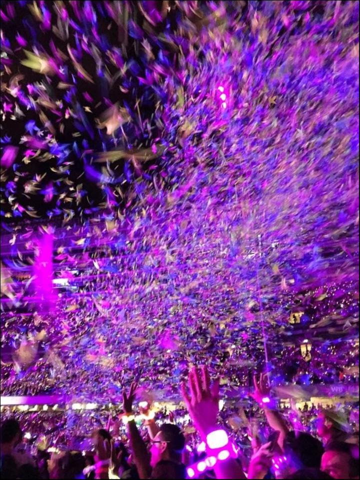 Confetti blanketing Soldier Field.