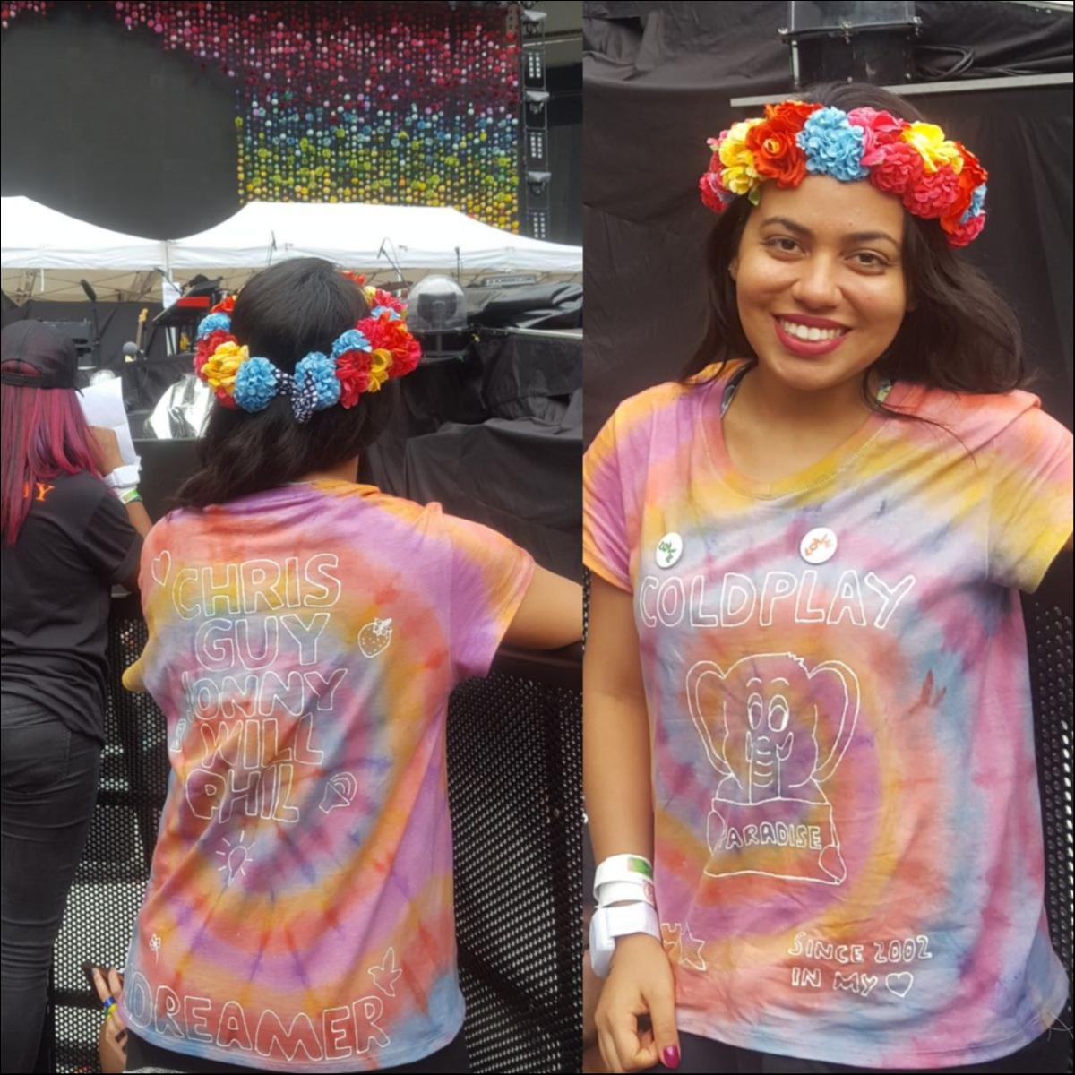 HOMEMADE SHIRT AND FLOWER HEADBAND FOR COLDPLAY SHOWS IN SÃO PAULO!!!