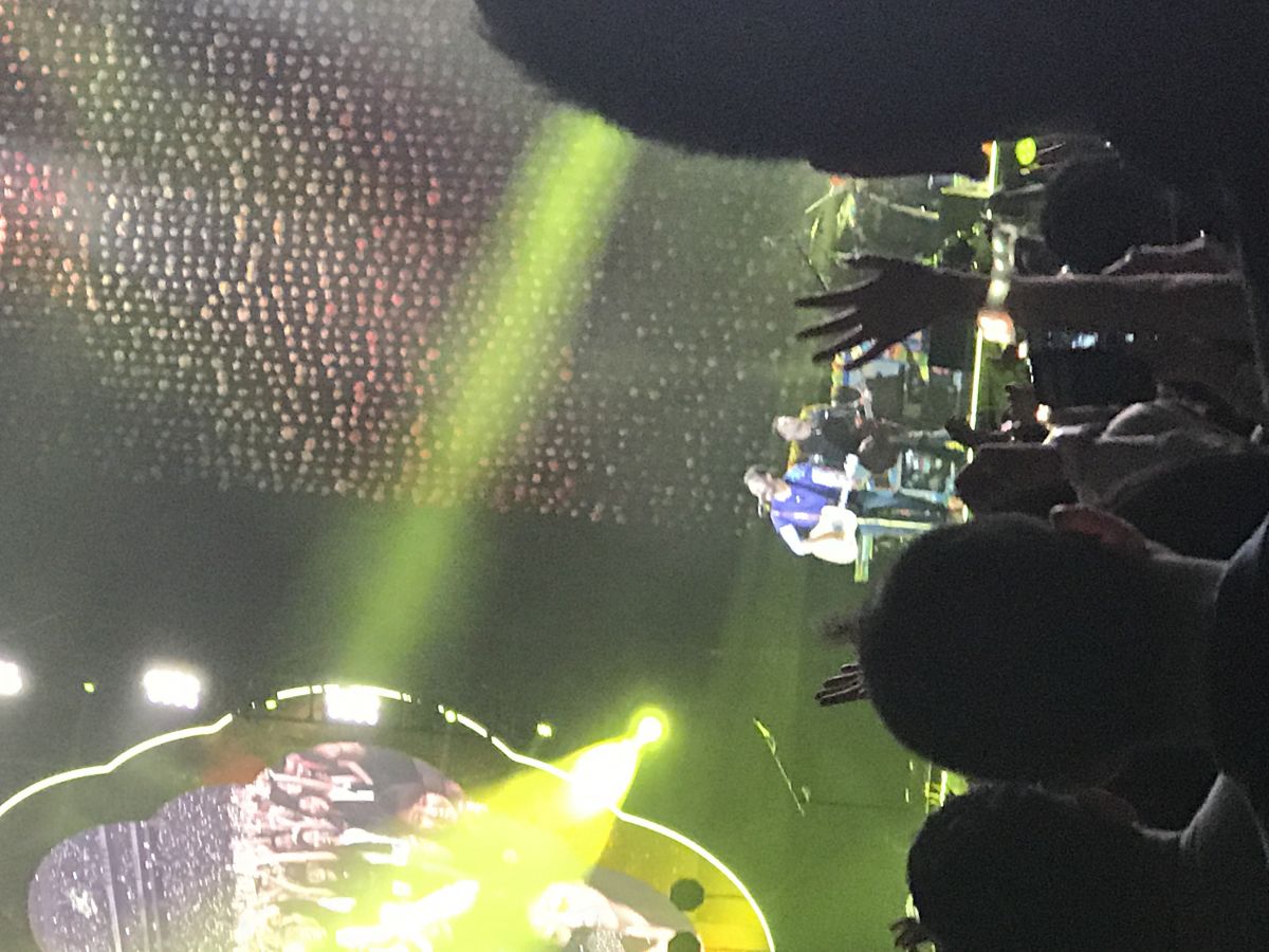 日本語でごめんなさい。初めてのライブ参加でした。Viva La Vida Tourの時から行きたくて、ずっと行ける日を楽しみに待ってました。Viva La VidaTourから約8年。私には子供も生まれました。そのくらい、とても長い月日が経っていた。やっとライブに参加できてとても嬉しかったしライブのOPが流れると涙が出ました。一生の思い出です。次は出来たら、子供と参加したいです。