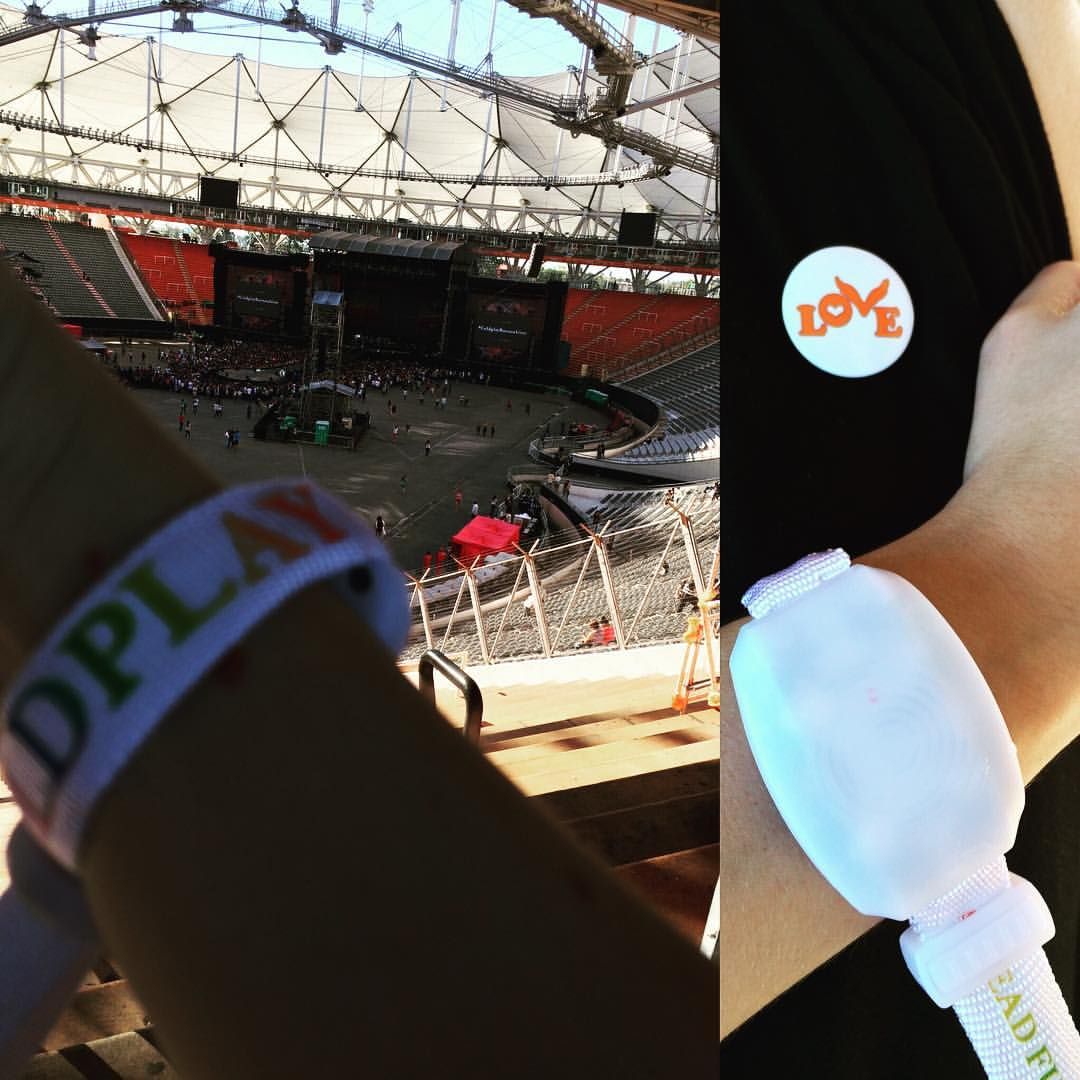 Pulsera luminosa y pin. Ya estamos. #coldplay