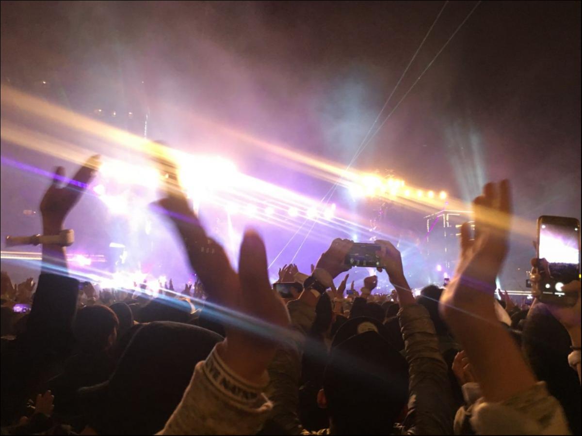 The beautiful light show during the second night of Coldplay's Taiwan leg. Taken at Taoyuan HSR Plaza.