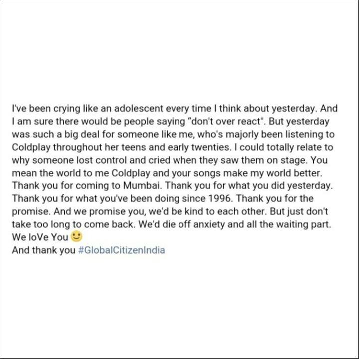 You literally are ALWAYS IN MY HEAD. Thank you would be an understatement for what we experienced yesterday. Hope to see you do more such concerts in India SUPER SOON